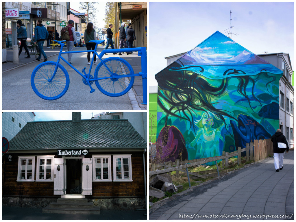 Po szybkim rozpakowaniu, ruszyliśmy w miasto, aby poczuć islandzki klimat i kulturę 🙂 Przyznam, że z początku nie odczuwało się, że to miasto jest stolicą. Było dość, spokojne i nie takie zatłoczone (no, ale my w końcu przylecieliśmy z Londynu!) Absolutnie zakochałam się w ich sztuce ulicznej, a kreatywność można było dostrzec na każdym kroku, m.in. na wystawach sklepowych.